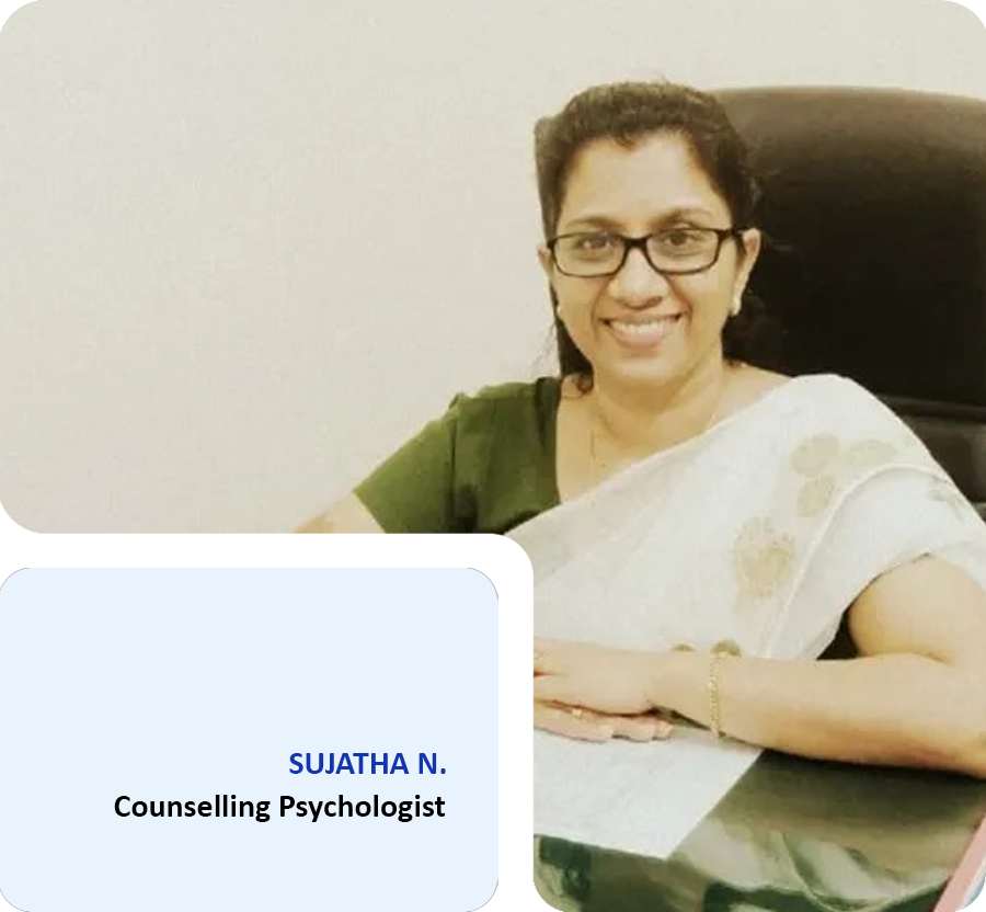 Looking for the best lady psychologist in Payyannur? Consult Sujatha N with 22+ years experience. Online counselling available worldwide in English, Hindi, Malayalam & Marathi.